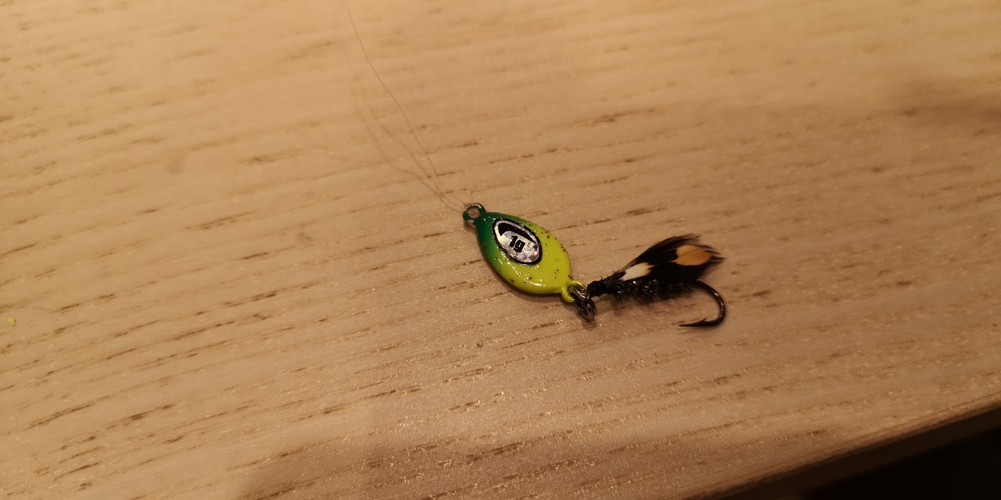 お爺ちゃんが使ってたフライフィッシング用の毛鉤を付けてみた(*>∀<*)