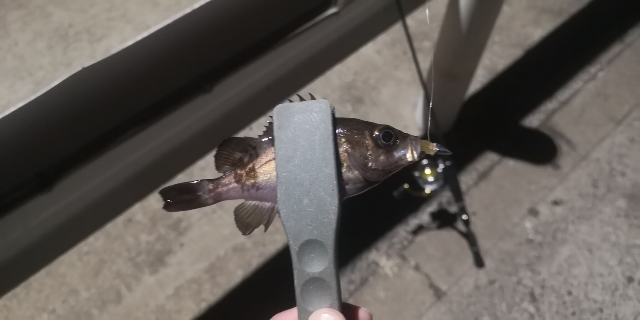 1投目キャスト後に着水フォール中にプルル...でメバルゲット